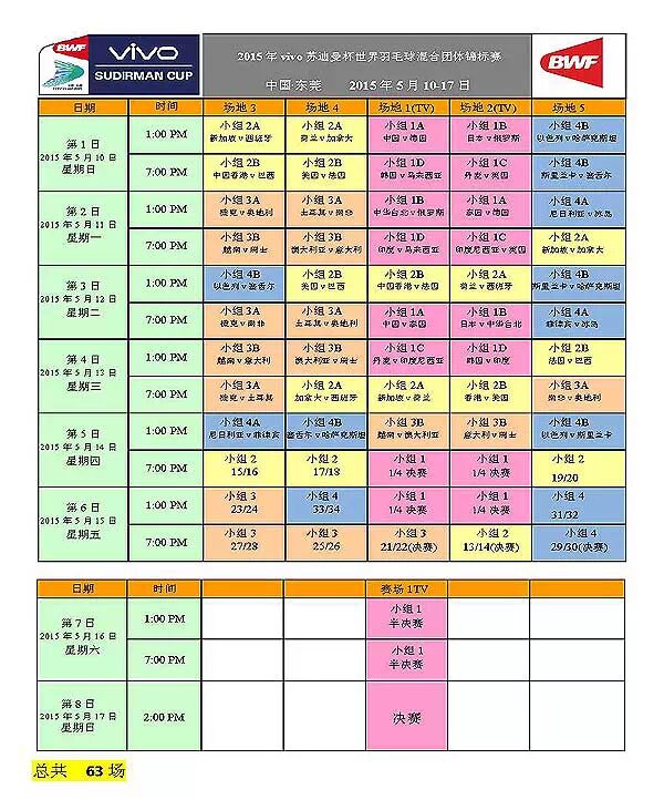 附录2015年苏迪曼杯世界羽毛球混合团体锦标赛赛程表